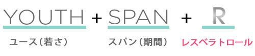 若さを意味する「ユース」と期間を意味する「スパン」、そして製品特長のポイントであるレスベラトロールの頭文字「R(アール)」を組み合わせてつくりました。